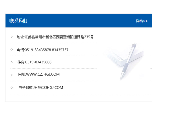 地址:常州市新北區友邦商務大廈1幢16、17層  電話:0519-85101652  傳真:0519-85112595  郵編:213022  網址:www_cz-jiayue_cn.jsszybook.com  郵箱:xiajifengaa@163.com